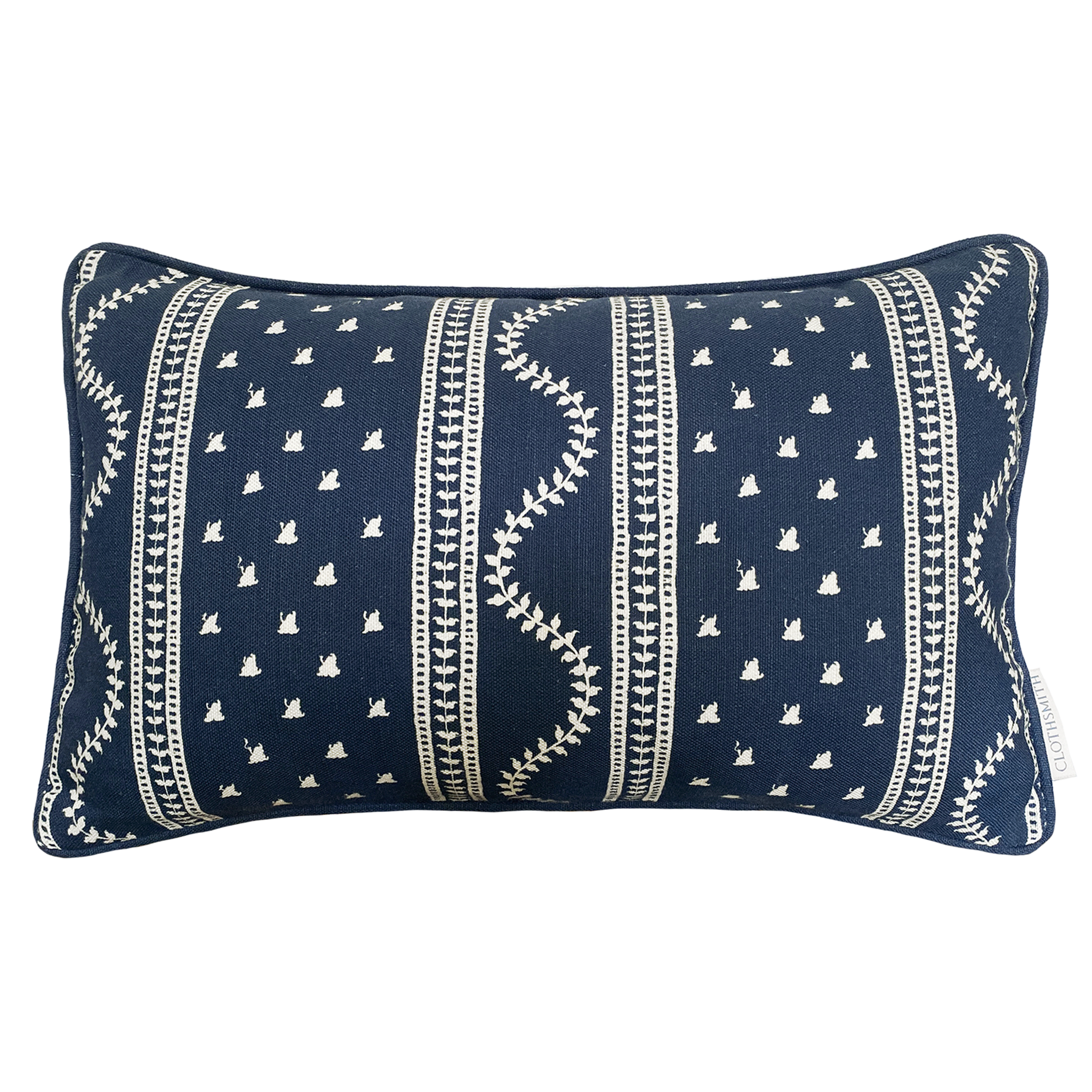 - A rectangular cushion cover in our Odette pattern, featuring delicate garland detailing. A simpler take on our Renee design.