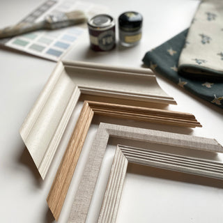 Working with our expert framers, a great deal of time and thought goes into our framing to ensure that each piece shines. We select mouldings and mounts that are sympathetic to the piece, and frame colours are chosen to compliment the palette. To further give the impression that they are textiles not just prints, many of the pieces are float mounted onto linen, adding depth and texture. On certain prints, our framers skilfully hand cut around the shape of the textile, once again adding to the illusion that they are in fact textiles. This unique way of framing the art elevates them from being just a standard framed print.