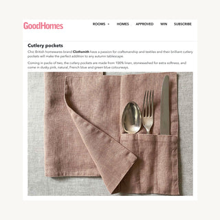 "Chic British homewares brand Clothsmith have a passion for craftmanship and textiles and their brilliant cutlery pockets will make the perfect addition to any autumn tablescape."